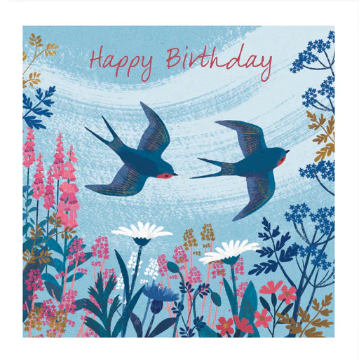 Description: Two Swallows 141 x 141mm (contains greeting)