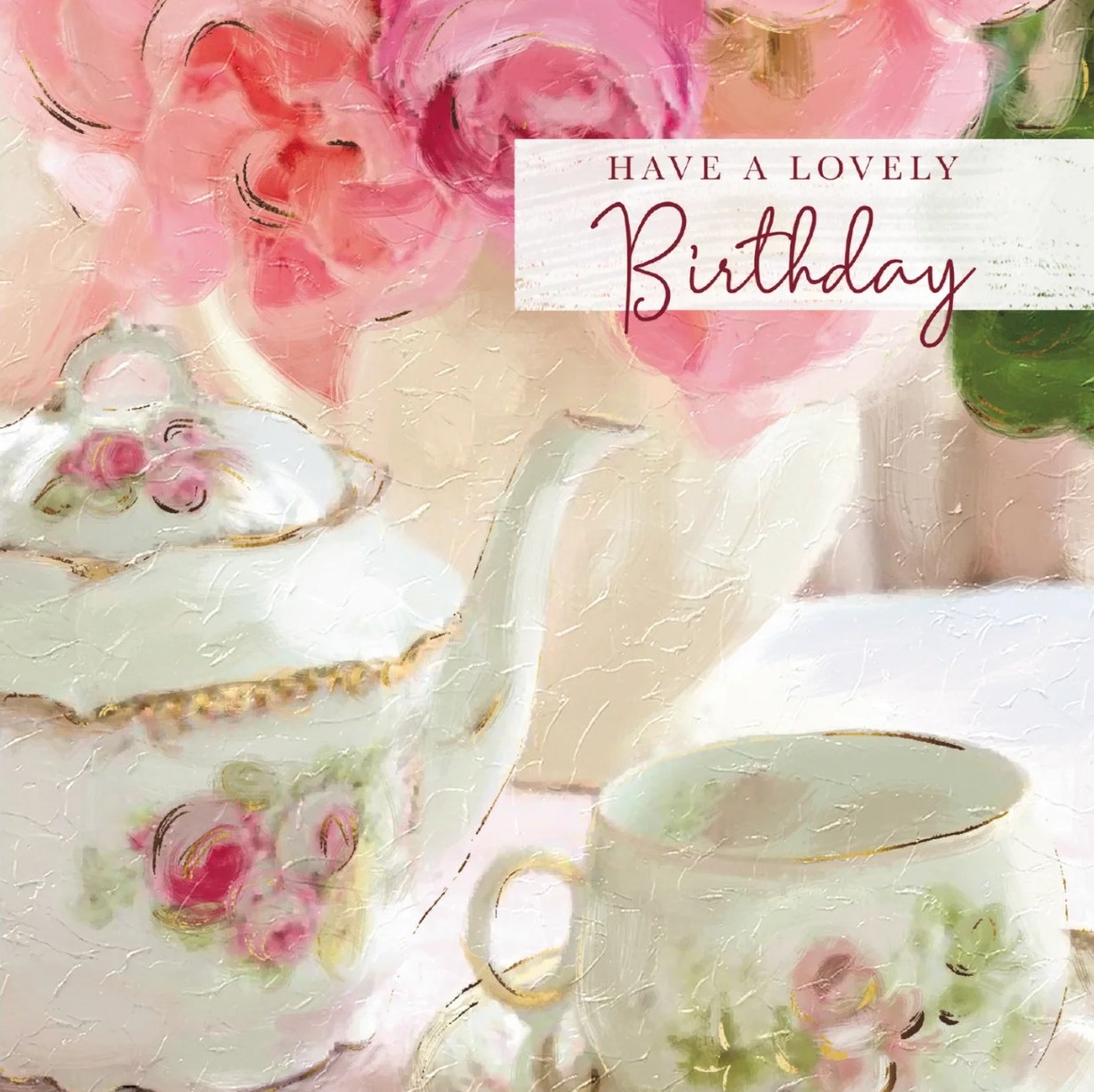 Description: Teapot and Teacup Table Scene 141 x 141mm (contains message)