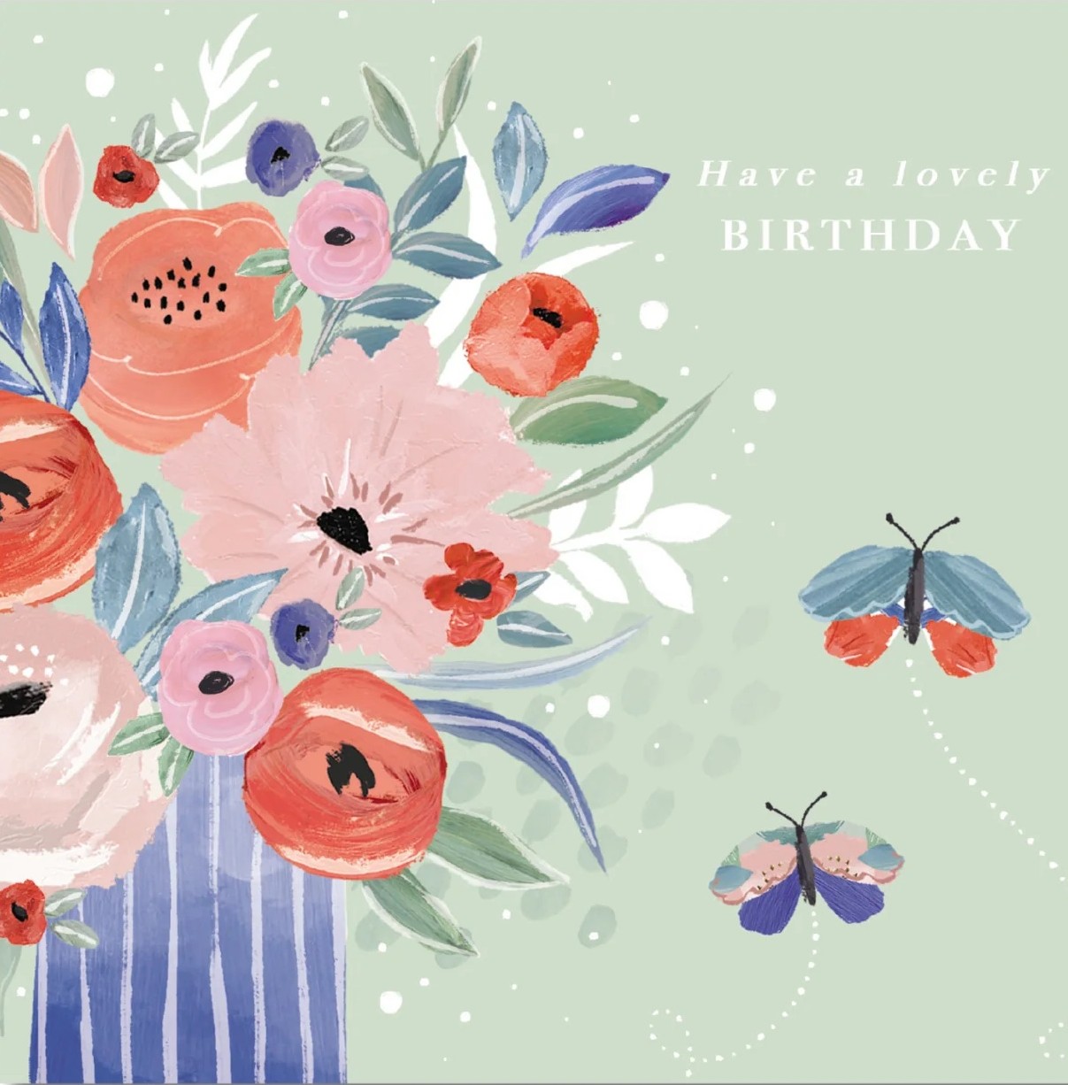Description: Bouquet and Two Butterflies 141 x 141mm (contains greeting)