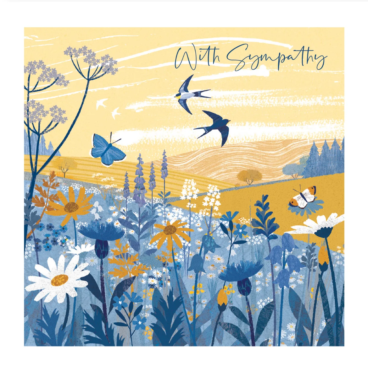 Description: Blue Meadow with Two Butterflies 141 x 141mm (Contains message)