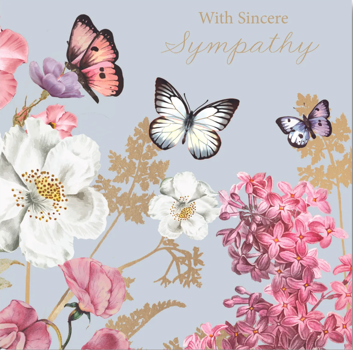 Description: Big Florals and Butterflies 141 x 141 mm (Contains greeting)